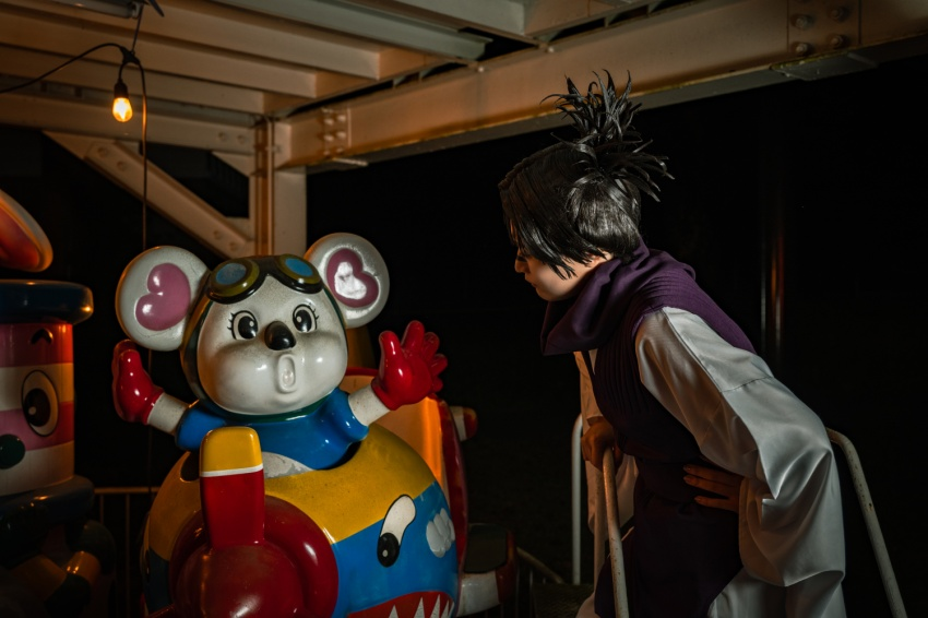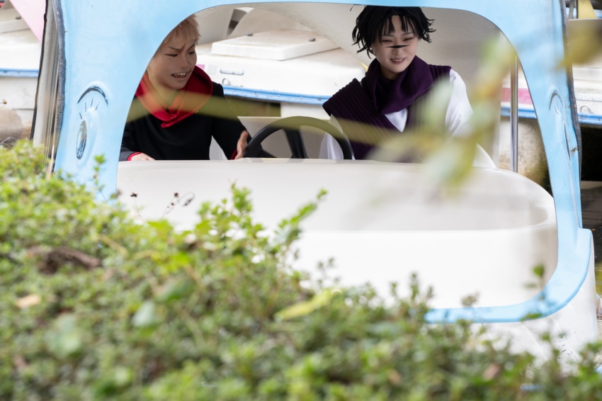 夜の遊園地に呪霊を祓いに来たものの、お昼の間は遊んで良いと言う設定でロケーションを変えながら、1600枚程度写真を撮っていました。